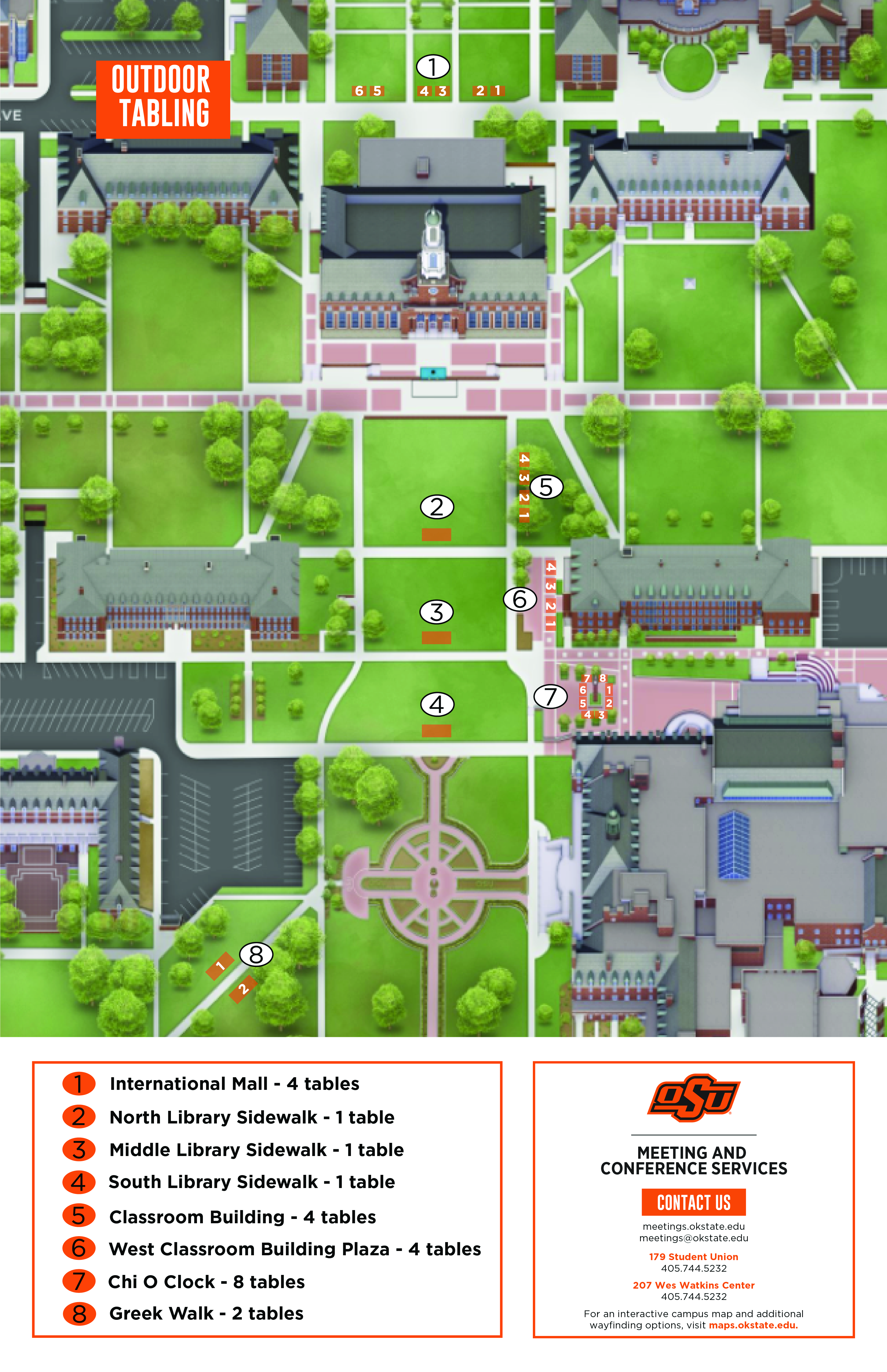 Questions? Contact Meeting & Conferences in 179 Student Union at (405) 744-5232 or meetings@okstate.edu.